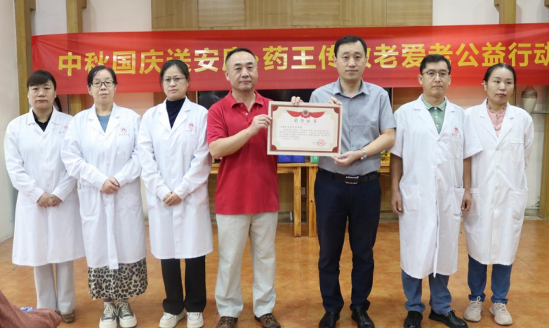 活动伊始,医院负责人李振在老年公寓活动大厅发表讲话。李振表示:“中秋是团圆的节日,国庆是家国同庆的时刻,老人们的健康与舒心,是我们最牵挂的事。药王传中医院始终秉持始终秉持着‘以人为本,全心服务’的理念。这次走进老年公寓,就是希望把专业的中医服务送到老人身边,让大家在双节来临之际,既能感受到节日的热闹,也能拥有健康的安心。未来,我们会把这样的义诊活动坚持下去,让更多老年朋友享受到中医健康服务的便利。”讲话尾声,富翔老年公寓负责人代表全体老人,向李振颁发了荣誉证书。
